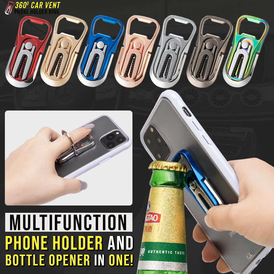 Built-in metal hook that can be used as a phone holder also serves as a bottle opener.