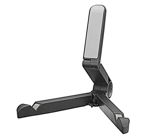 Adjustable Foldable Tablet Holder firmly cradles phones and tablets of any sizes, thanks to the fully adjustable arms and non-slip pads.