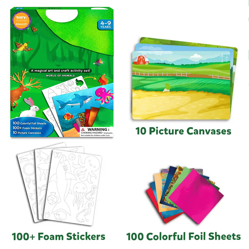 •Includes: 100+ Foam Stickers. 100 Colorful Foil Sheets. 10 Picture Canvases. Googly Eyes & Instruction Manual