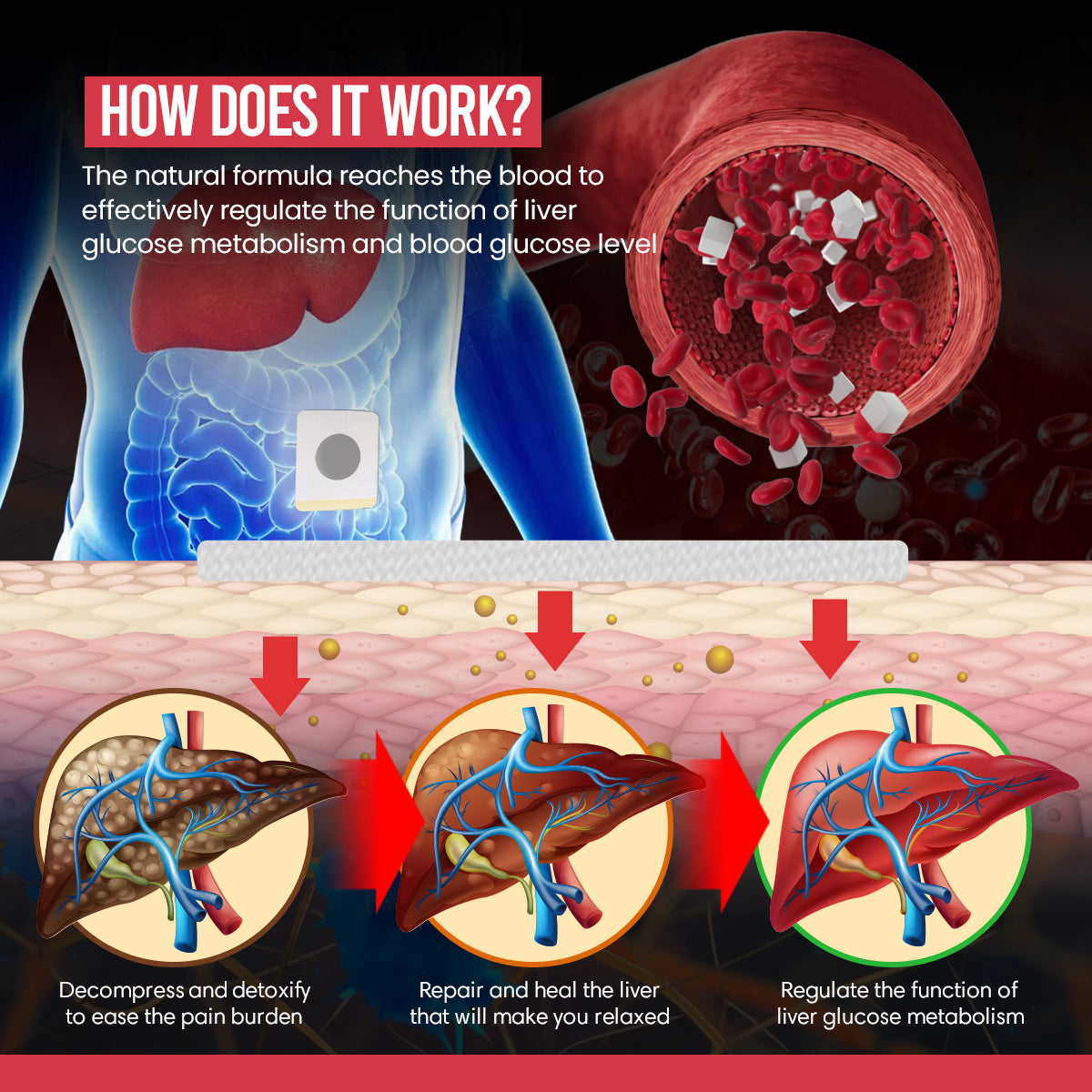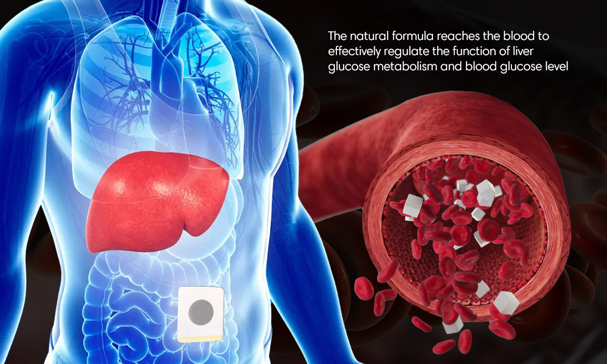 The patch delivers a blend of natural ingredients through the skin, supporting blood sugar regulation and liver health.