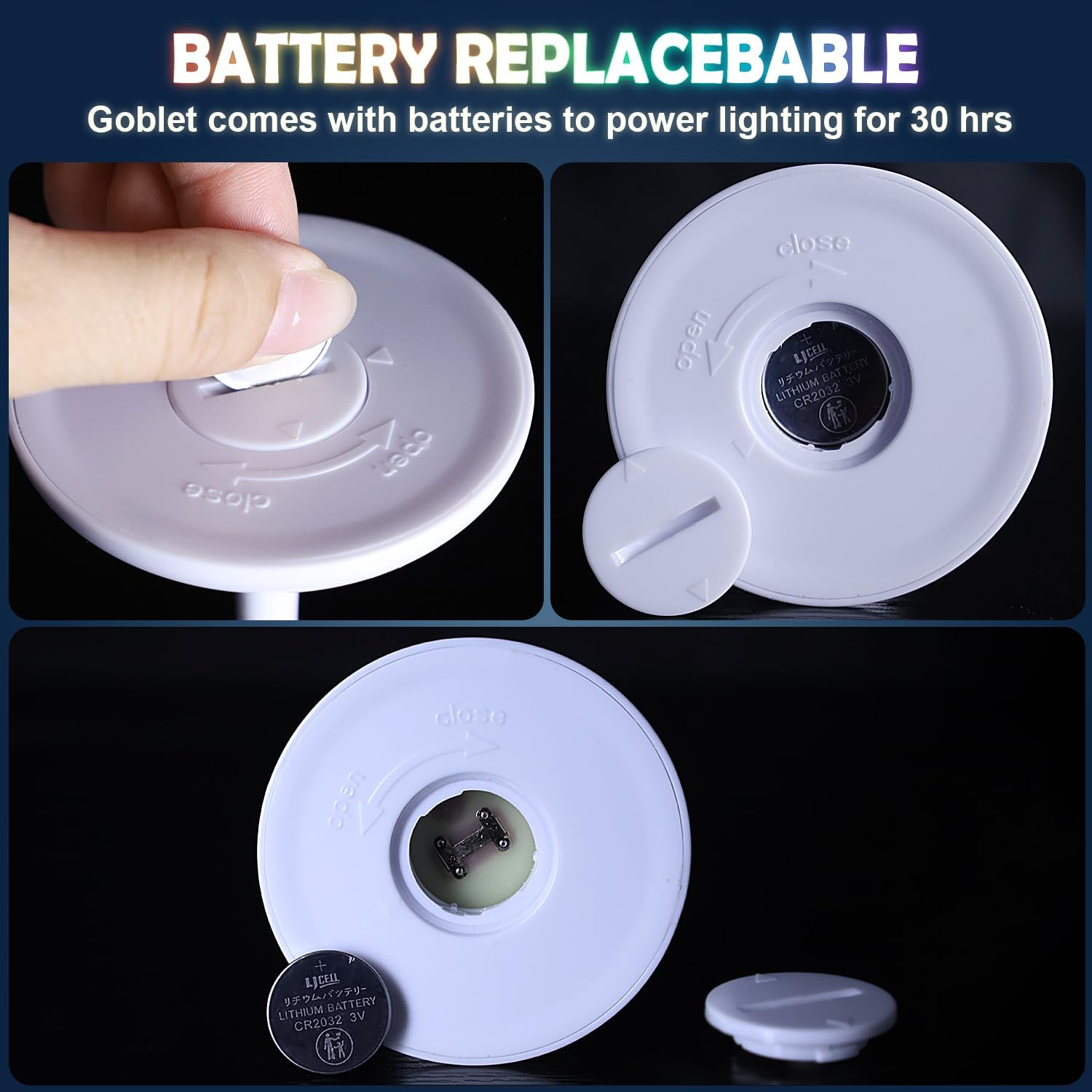 【 Stay Lit for Over 30 Hours & Battery Replaceable】- The cups are sturdy and the light stayed lit for over 30 hours. The light lasted longer than the need for the cups. The battery is replaceable. Use common CR2032 button batteries. so easy to replace