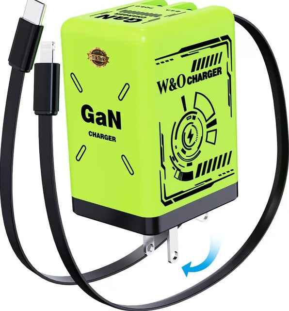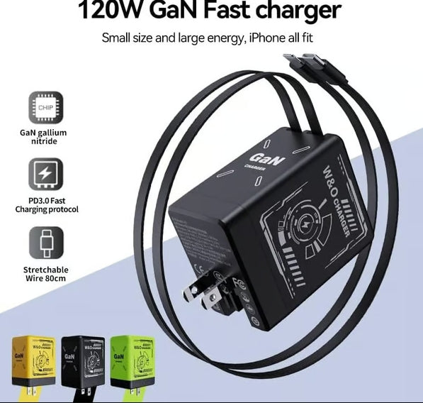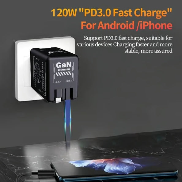 Cilifer® 2-in-1 GaN Compatible with 120W Fast Charger with Retractable Type-C and ligtning Cable D01