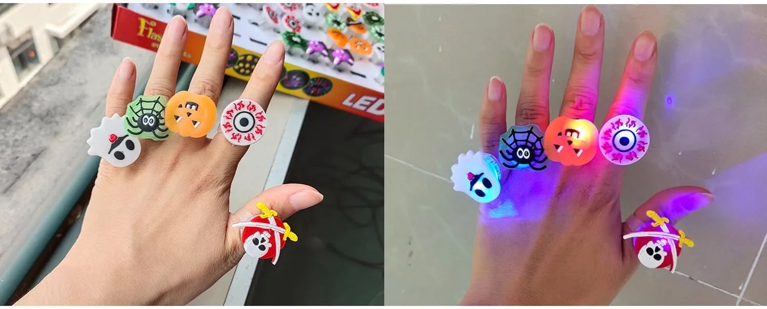 【Luminous Gift For Kids】Halloween LED rings packaged exquisitely. perfect as gifts for 3 4 5 6 7 year old kids. Halloween rubber rings are good alternatives to candy. prevent candy damaging kid's teeth. Bright and colorful light up ring toys fit for trick or treat. pinata stuffers. birthday gifts. classroom rewards. treasure box. How great surprise.