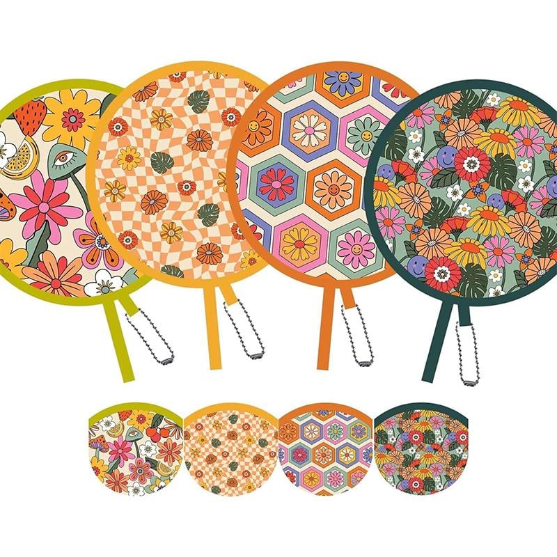 🌸 4 Unique Boho Designs | 🌀 7.8 Round Fan (Folds to 2.8)