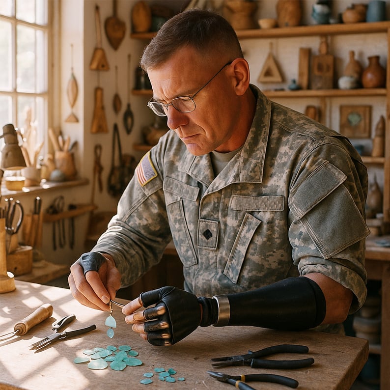 Handmade in the USA by a combat veteran with one hand — each piece tells a story of courage and healing.