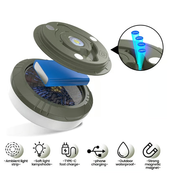 ◪Powerful Backup: These tent string lights can turn into a mobile power source in seconds outdoors, with a built-in 2000mAh battery that can work for 5-12 hours after being fully charged. They also have USB power output with TYPE-C fast charging, which can be used to charge your phones and other devices.