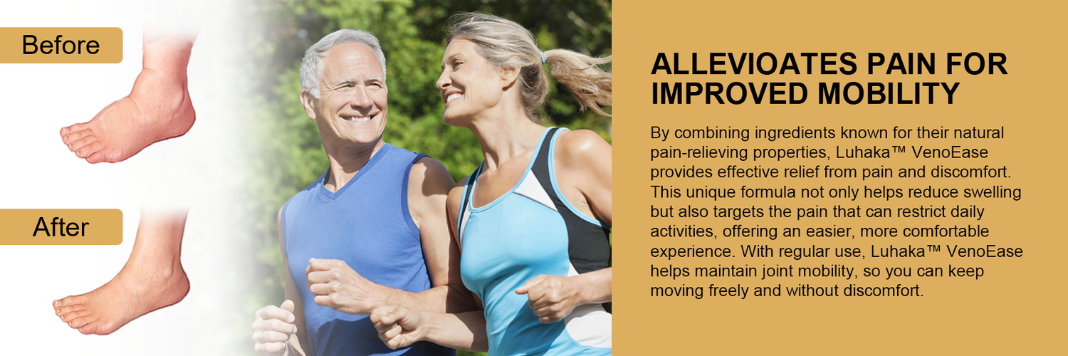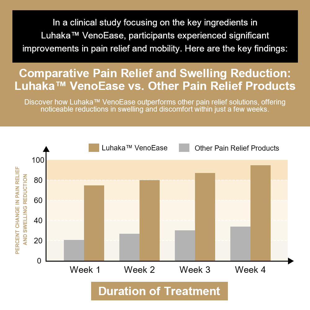 *In a 60-day study with over 200 participants, Luhaka™ VenoEase showed remarkable results in reducing swelling, alleviating pain, and improving joint mobility, providing significant relief and enhancing overall comfort and well-being.