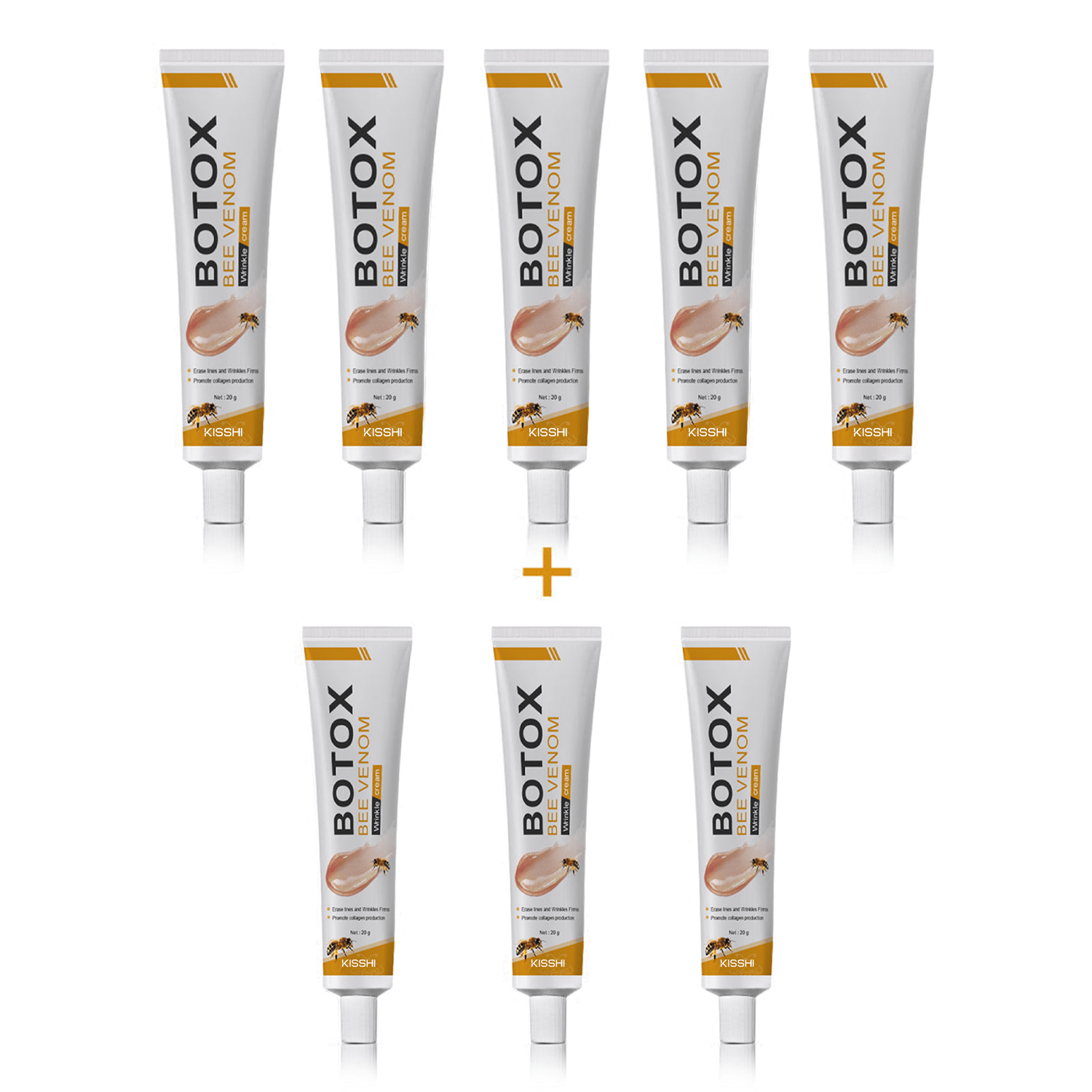 Kisshi™ Botox Bee Venom Wrinkle Removal Cream uses high-quality ingredients to maximize efficacy by locking in moisture, stimulating collagen production, smoothing wrinkles, and repairing damage.Â