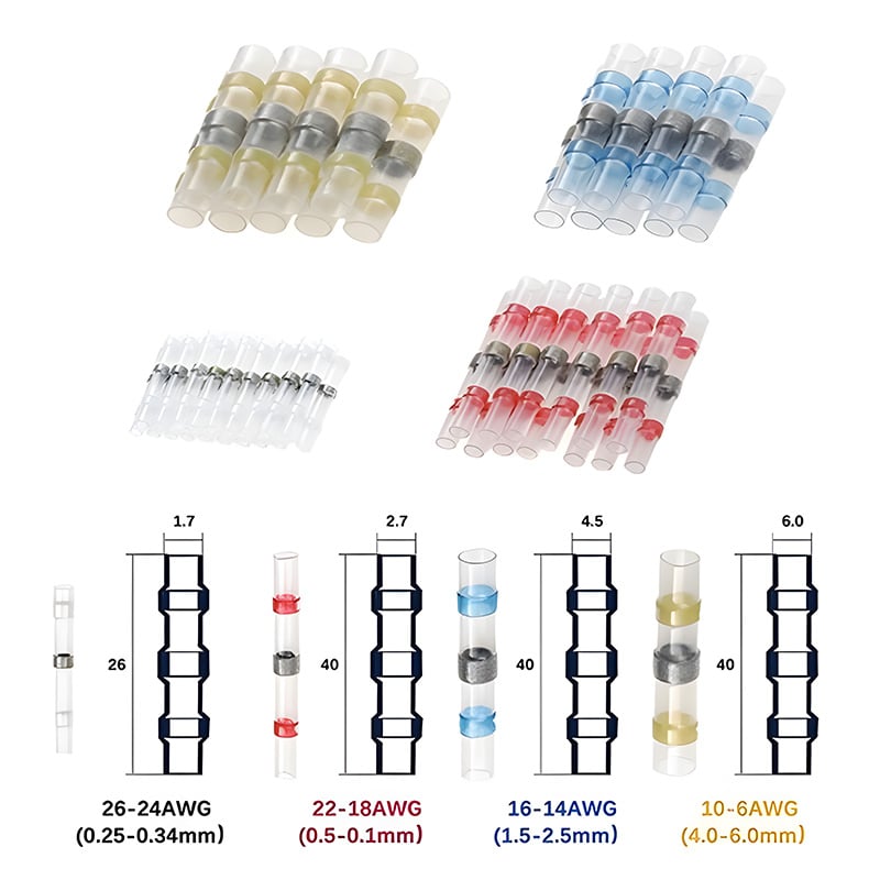 4 different color tubesĀ withĀ easily recognizableĀ gauge marks. you just need to measure the wiring toĀ quickly choose theĀ right connector.